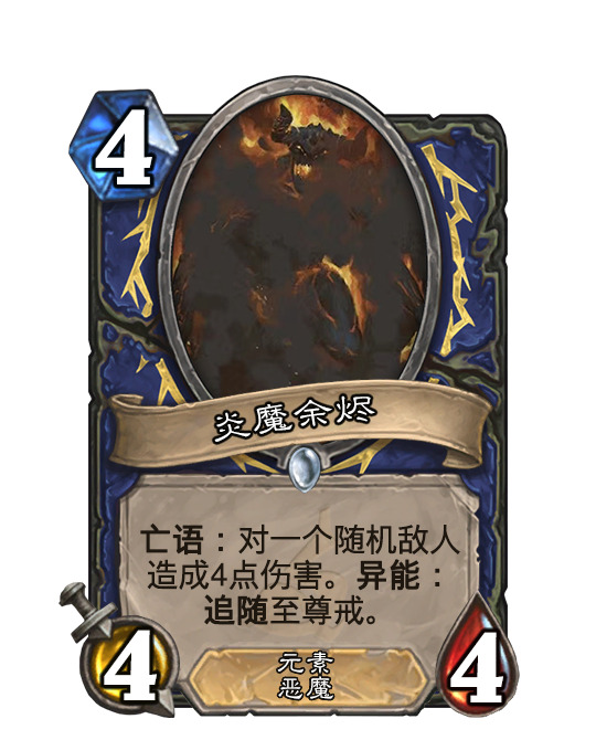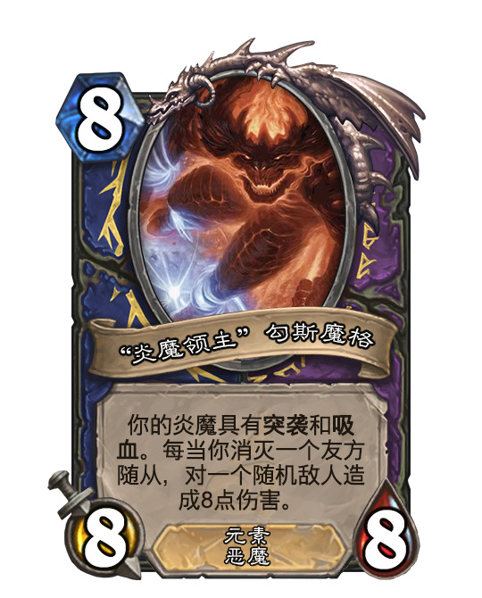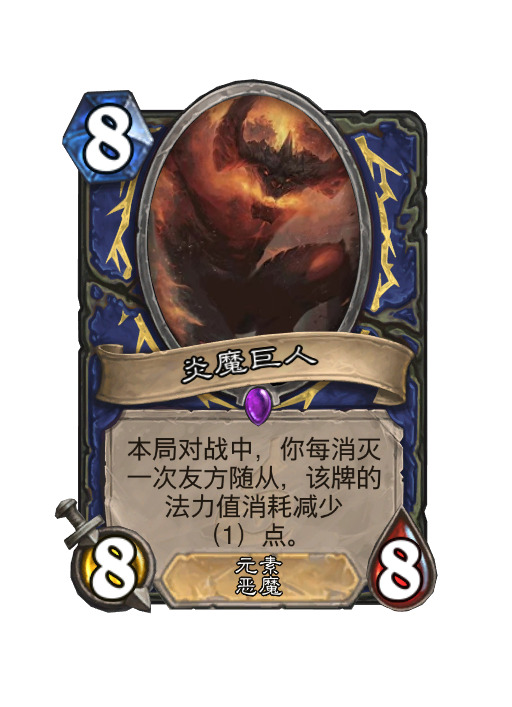 *炎魔包括:该随从本身、炎魔余烬、炎魔督军、炎魔巨人、炎魔统帅、炎魔之王拉格纳罗斯