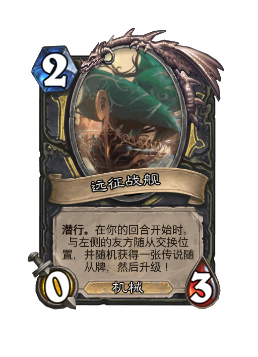 *“远征战舰”升级后,获得的传说随从牌增加1张。