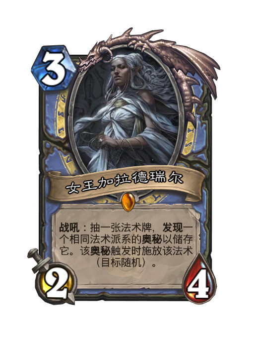 *如果加拉德瑞尔抽到的牌没有法术派系,则会优先发现无法术派系的奥秘;如果当前对战模式没有相同法术派系的奥秘,则改为“发现一个奥秘(法术派系随机)”。