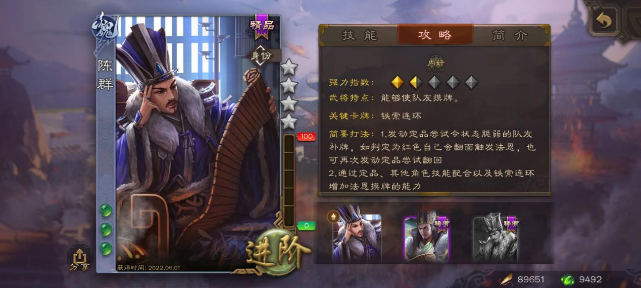 乍一看陈群可以让队友和自己各种摸牌,其实收益都非常低。同时需要承担的风险也是很高的,收益与风险完全不匹配,毕竟自己翻面的概率实在太高。而翻面可是被称为三国杀最强限制效果的。如果把定品的判定改为某种花色才翻面,那这个武将还可以玩一玩,不然也只有一星半了。