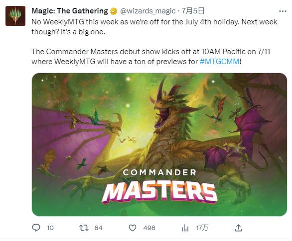 指挥官大师预览在即,下周(7月11日)的WeeklyMTG将放出大量内容。