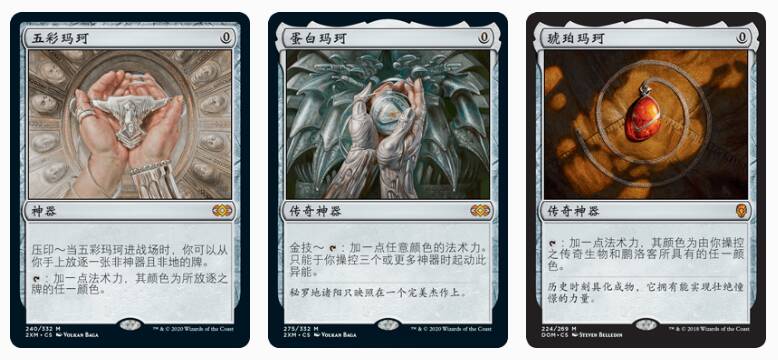 这些也都是近期其实印过的加速神器,不过价格仍然不便宜,在指挥官中使用量也是肉眼可见的。琥珀玛珂虽然在兄弟之战以秘典的形式印过,不过本身异能更契合指挥官的主题(传奇,当然了很多情况下琥珀玛珂没法付费出指挥官)。以上三款中印某一款都算是个好事儿,不过下面这一款也不是完全没可能: