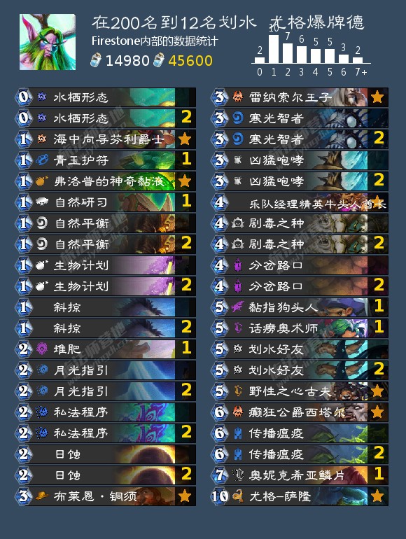 来自Firestone内部的数据统计,在200名到12名划水的尤格爆牌德,85-50