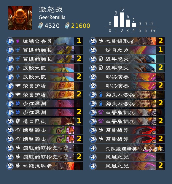 2. 附上卡组图、代码、排名截图、游戏id(如果愿意给完整游戏id含#XXXX的尾号,欢迎提供,这样能让更多的人可以加你好友,与你的卡组做交流) 、区服、胜率统计或d0nkey的排名历史、来源、直播间、视频链接等等,也欢迎大家来投稿你在各个地方看到的狂野卡组,不只是自己的。如果卡组有带乐队经理精英牛头人酋长,请特别交代一下你的牛里带什么(因为营地不会显示牛里有啥)