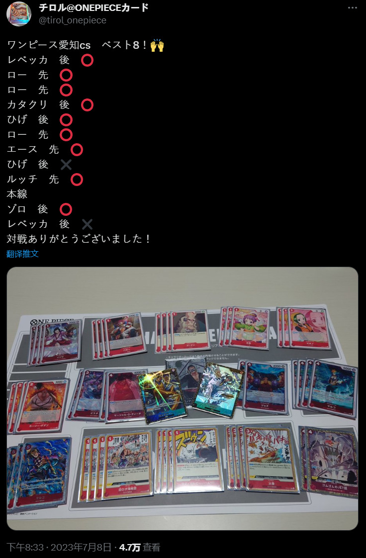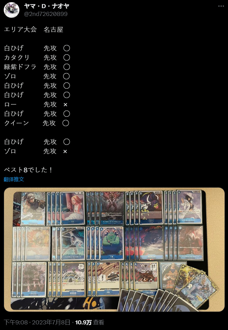上次福冈大会中一战成名,本次爱知大会明显备受针对,打进16强的仅有一套,不过这根独苗战斗到了最后一刻,以瑞士轮+淘汰赛总计13-0的成绩拿下了最终优胜。