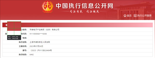 根据中国执行信息公开网显示,7月6日,苹果电子产品商贸(北京)有限公司成为被执行人,执行法院为上海市浦东新区人民法院,执行标的为6442元。