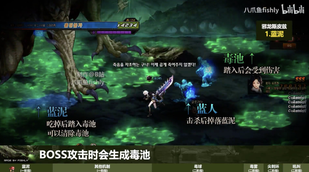 长虹操控人物从蓝色液体上跑过,她不知道需要停留一小会才能捡到。捡不到蓝色液体,游戏角色几乎全程中毒。邪龙即将发动攻击,她有些眼花缭乱,最后慌不择路撞到了怪物的攻击上,当即阵亡。