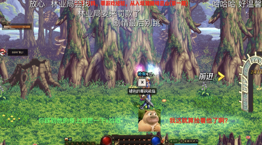 两分钟后,她终于打死了几个弱小的哥布林,找到了下一个房间的入口。一棵倒下的大树挡住了她的去路,系统提示使用普通攻击即可破坏。坐在一边的麻瓜对她又解释了一遍: “ 树横在你面前了,让你破坏这棵树。 ”