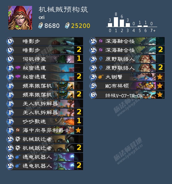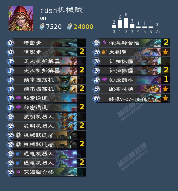 新的机械体系让人想起曾经强行推军七结果无人问津的结果,但是笔者很早就尝试过机械贼——最初寄希望于通道平替深海探索当low版机械骑玩,输的一塌糊涂,但是当时就确定了机械贼体系的基本玩法: