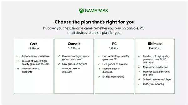 在调整后,新的Xbox Game Pass Core订阅服务将取代Xbox金会员服务,该服务定价与金会员相同,均为每月9.99美元。