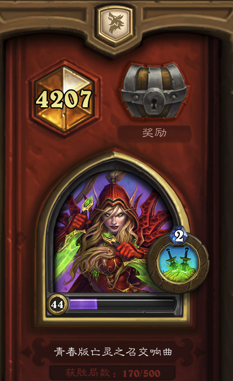 笔者实战时开出这三张大奖后的胜率几乎为百分之百,所以把套牌名字改成了亡灵之召交响曲增强羁绊。将笨重的蟊贼替换成风潮浪客也是考虑到环境中死亡骑士和法师较多,用风潮浪客***增加发现天灾军团或巅峰无限等强卡的概率,从而更快锁定胜局。