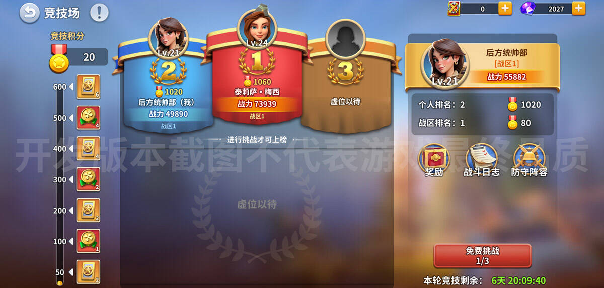 「竞技场」玩法的结算周期更加短暂,每周7天为一轮,每天和每轮都会根据竞技积分结算钻石、幸运徽章、5星指挥官碎片等丰厚奖励,玩法更加紧张刺激!