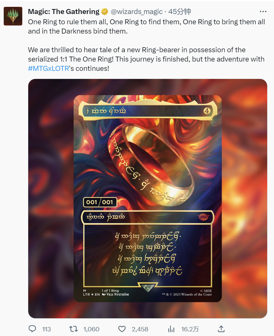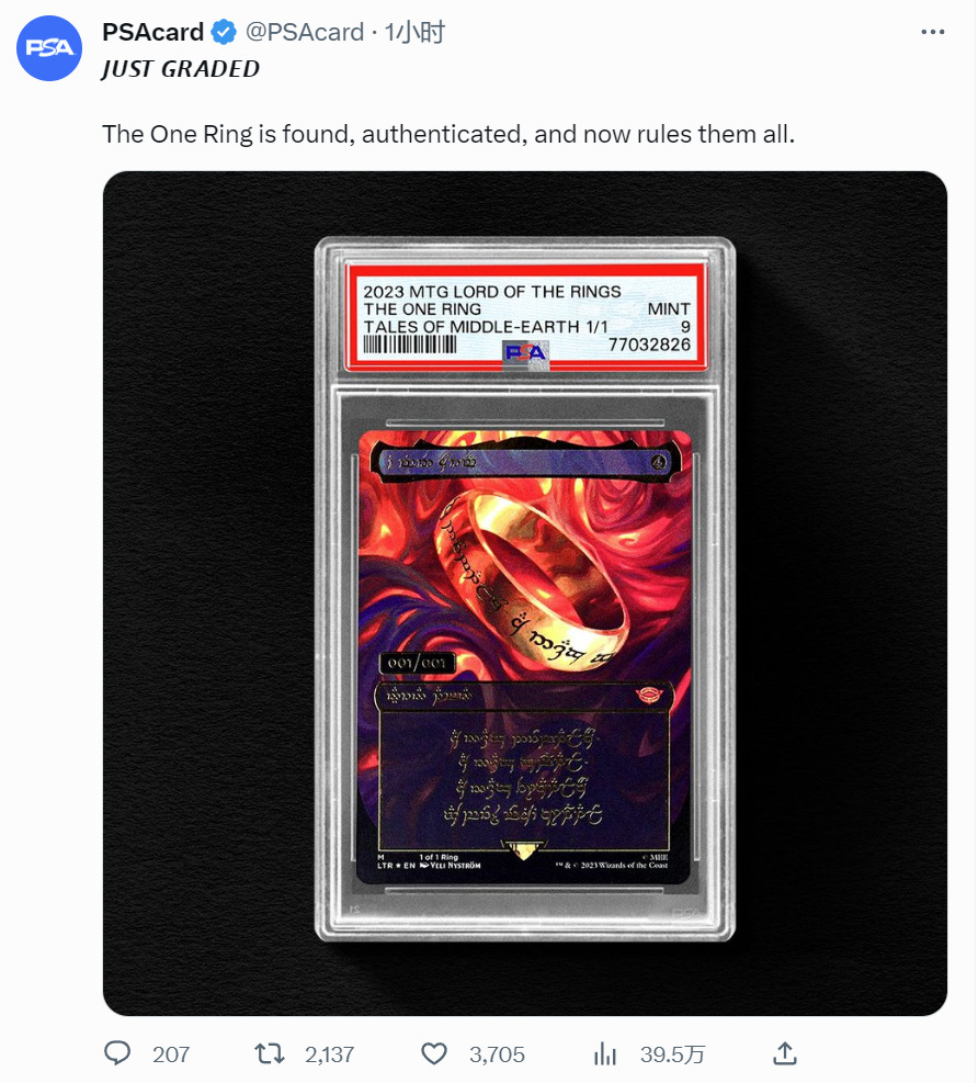 【LTR】1/1至尊戒已被开到,PSA9,官推官宣