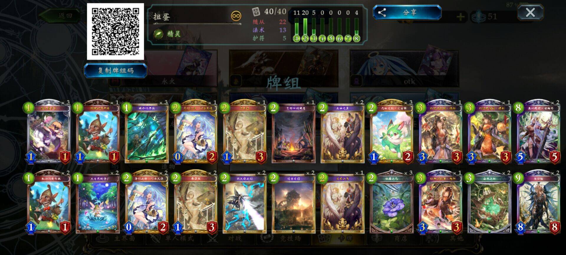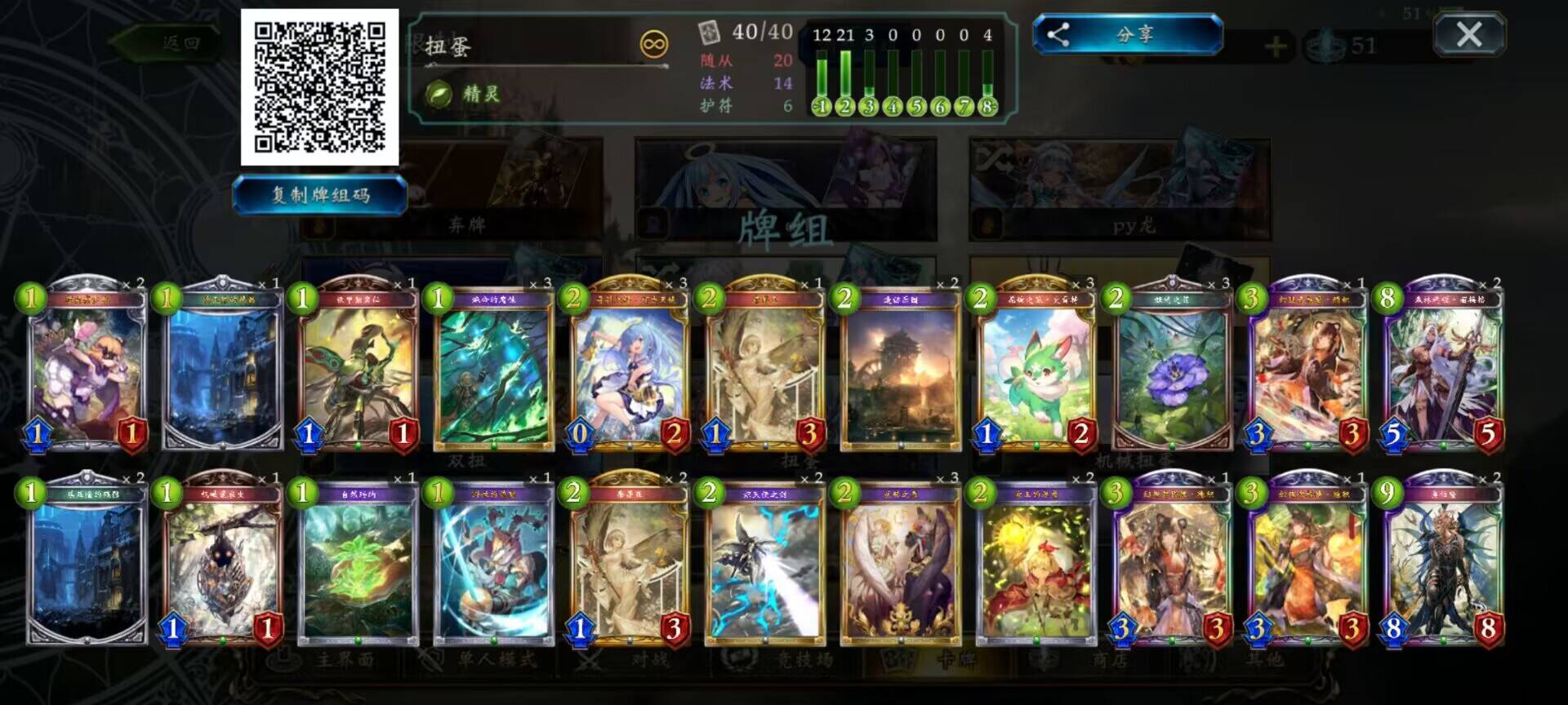 在实战了二十几把后,发现稳定性虽然说还行但是森林核这张卡的存在,让整个卡组的运作变得无比笨重,让原本带的抗快组件很难挤出余费出,并且比较依赖对面场面。因此我又重新构筑了第二套扭蛋。