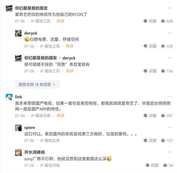 目前,很多网友认为这是爱奇艺在“白嫖”用户的上传快带,把用户的设备作为自己的服务器来使用,在没有明显告知的情况下属于侵权。