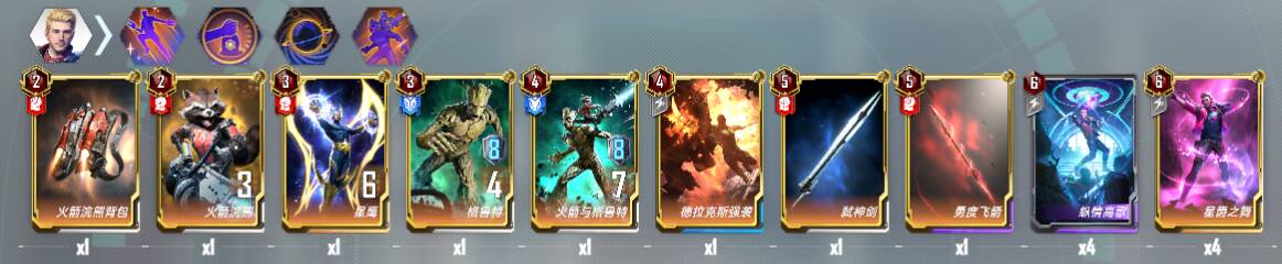 4费:火箭格鲁特,选到责任+星鹰上限赚8块,下限2块(刷新)。强袭凑数。