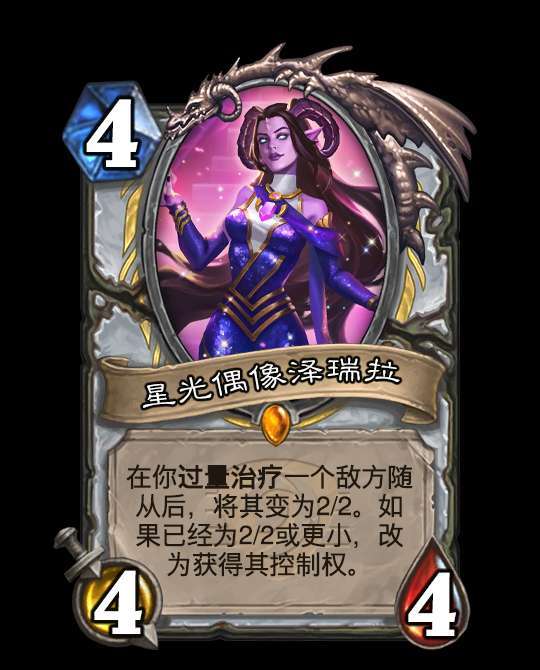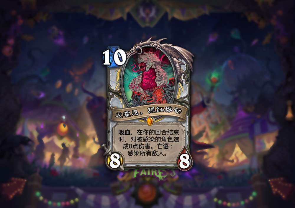 马戏团对于牧师的意义较为特殊,代表设计师正式确定在巨龙年大改出的职业特色设计是错误的,刚开始改回来的版本。此外,第二张牌上手后,该版本的奇迹牧很容易就能将其在1-2回合内腐蚀完,最早6费后牌库中的牌就全0费了。第二张图的构图相当画蛇添足。