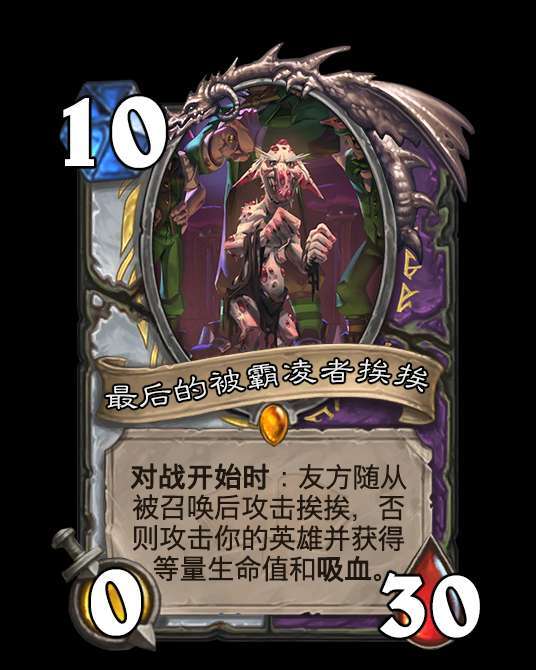 原版的戈霍恩和戈霍恩之血毫无配合,而这版则将二者产生了强关联,甚至可以成为大哥牧的直伤回血的重要组件。七煞套牌不仅风味上体现煞气,效果上也和暗月的一系列牧师减费牌相呼应。可以说是最适合代替原传说牌的一组了。