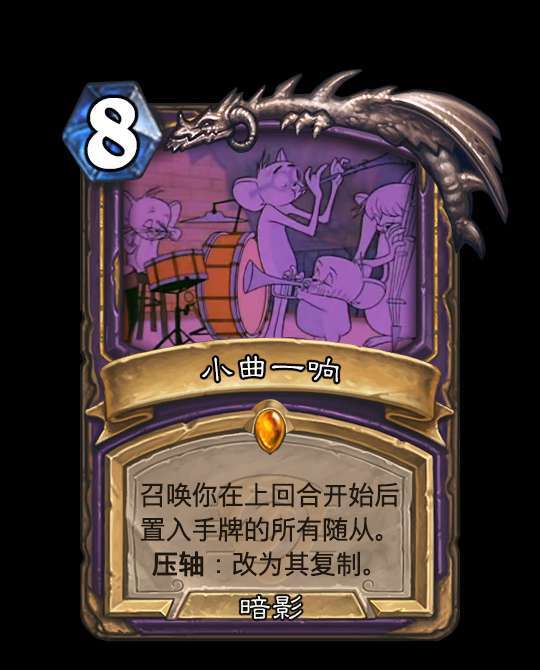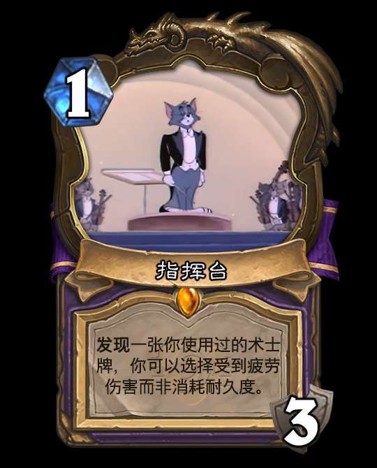 【小曲一响】没有看出“随从入手”这一要素和音乐节包术士牌的契合性。与情势反转等卡牌的配合过于危险。【指挥台】一卡的“使用过的牌”要素同样来路不明。但这张牌胜在《猫和老鼠》经典场面的契合度,创意值得高分。