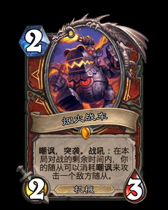 烟火战车的效果触发后,只要随从没有剩余的攻击次数,就能消耗嘲讽以攻击一个敌方随从,不论这是那个随从它进战场的第一还是更之后的回合。