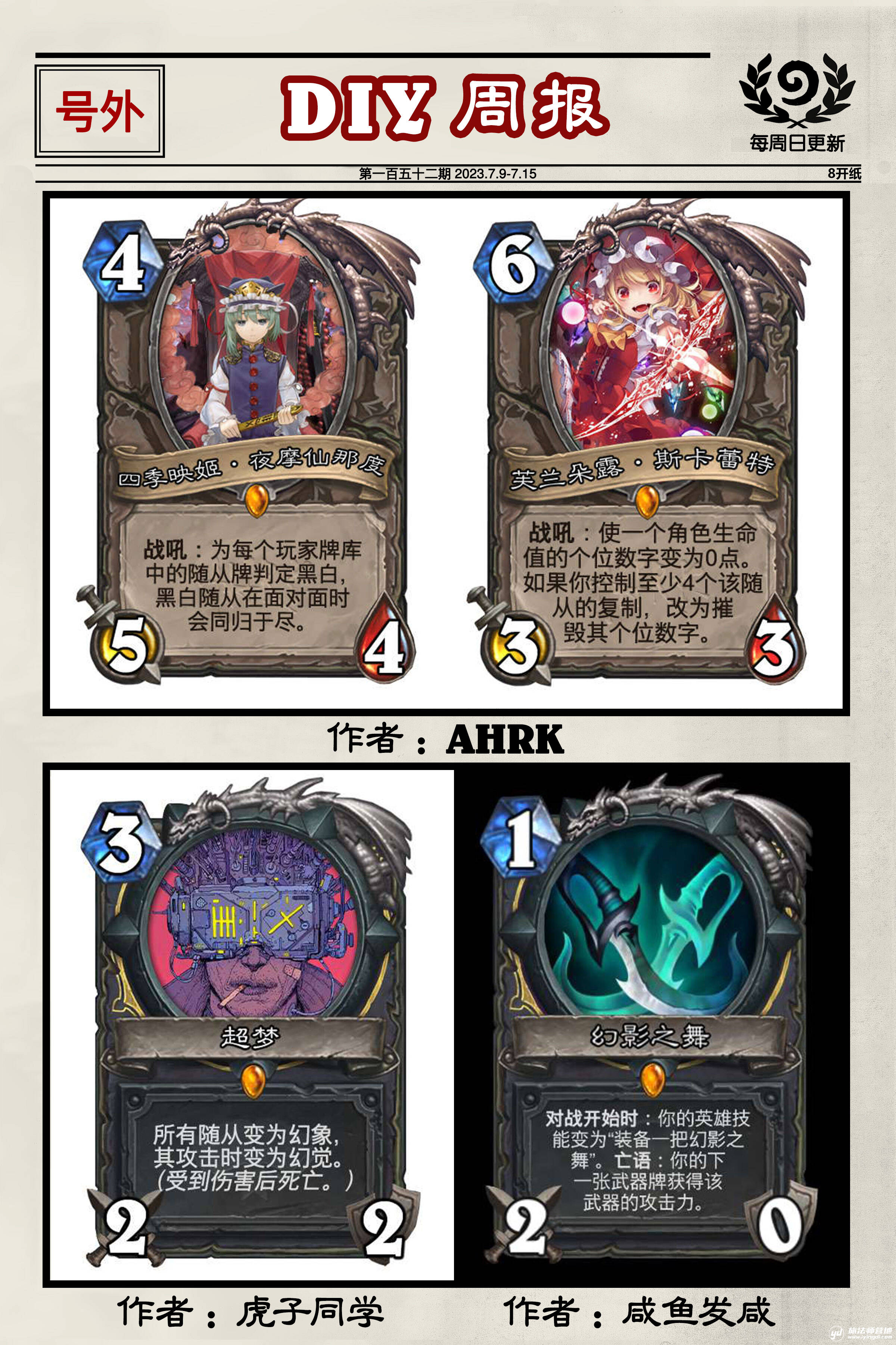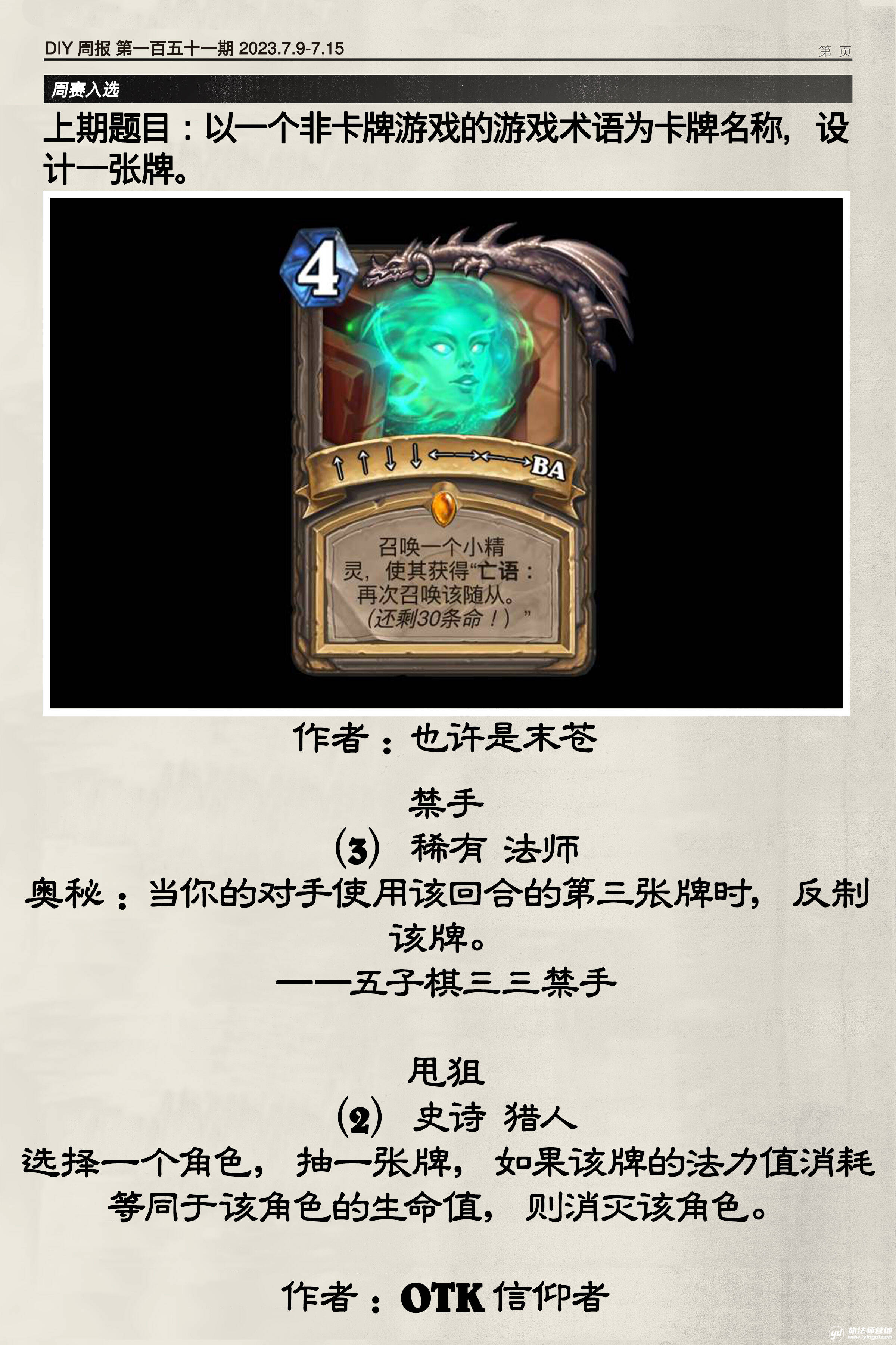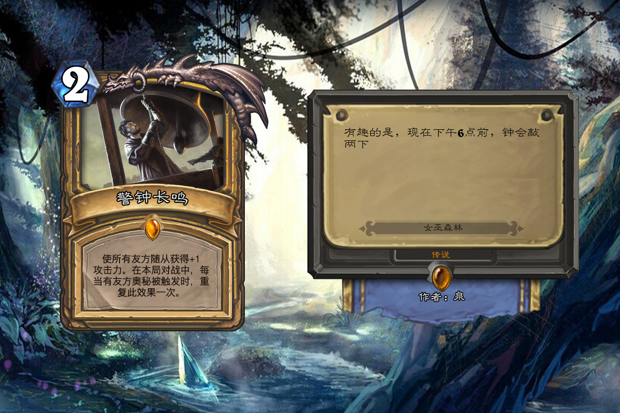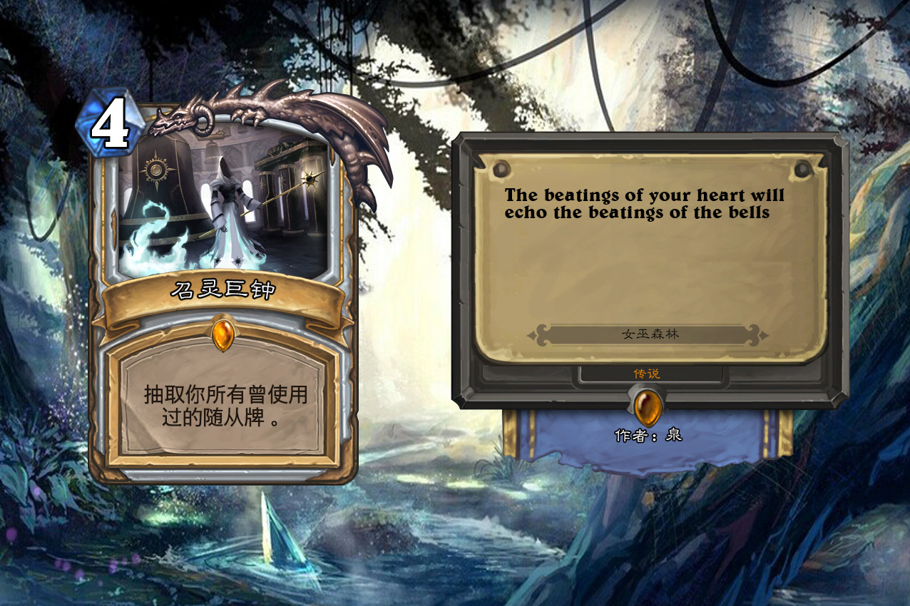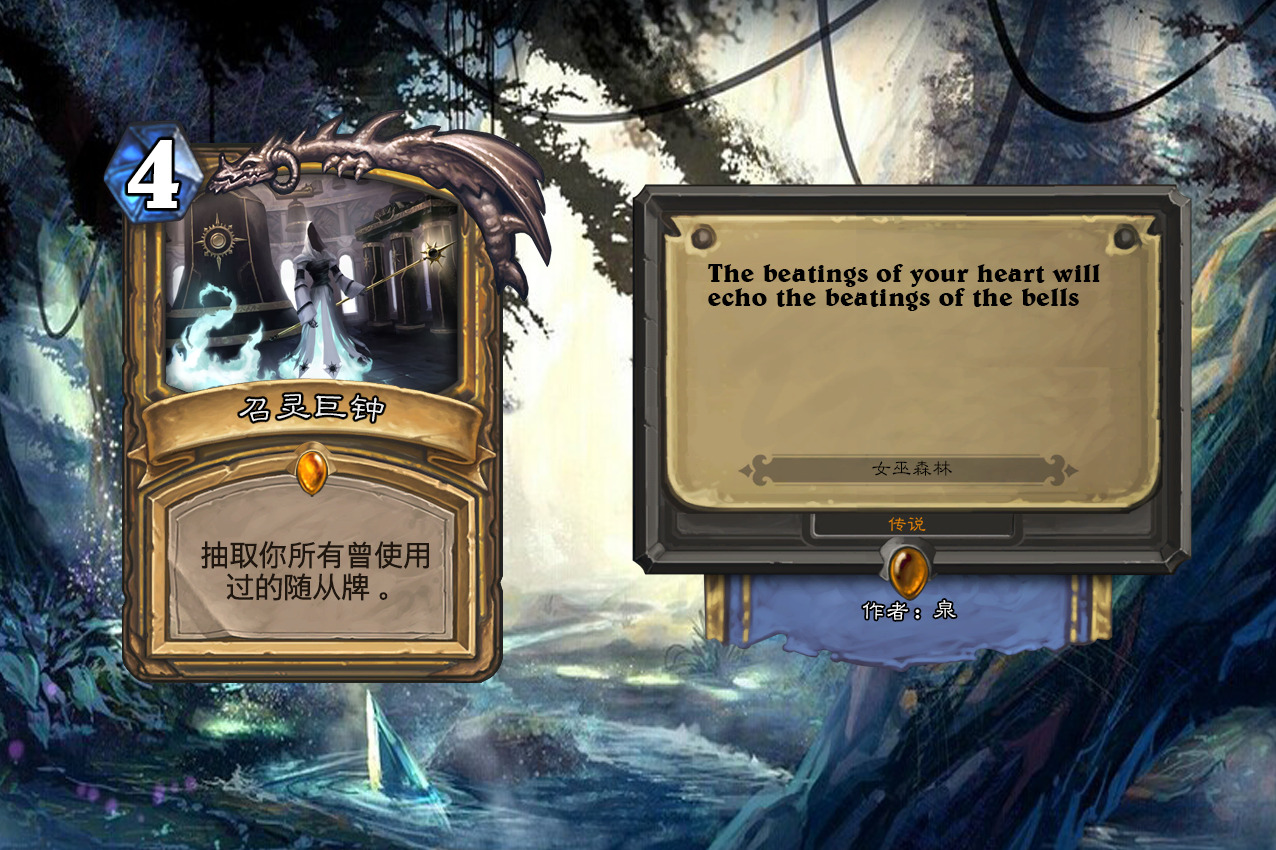 此作和女巫森林版本特色倒是相当契合,只可惜被制图疏忽所耽误。风味上可惜略显重复,女巫森林的圣骑士也缺乏与招灵巨钟配合的能力。作为设计和设计都中规中矩。有亮点设计会更受欢迎。