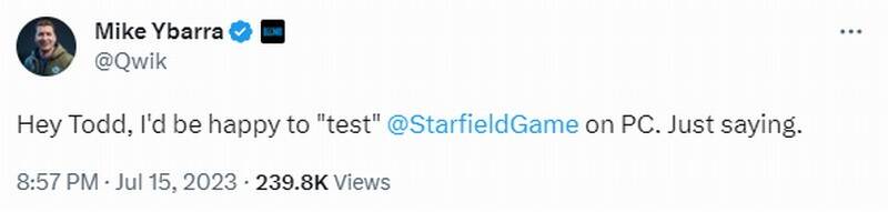 暴雪总裁Mike Ybarra看到该消息后,似乎也馋了。他发推文向Todd Howard喊话,希望也能得到《星空》PC版的测试资格。评论区有网友调侃称:“欢迎加入这个大家庭。B社 + Xbox工作室 + 动视暴雪 = 一家人。”“幸福的家人”等。