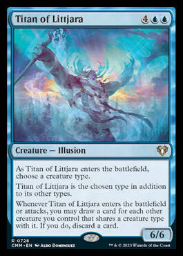 每当利雅拉泰坦进战场或进攻时,你每操控一个于之具共通类别的其他生物,便可以抓一张牌。若你如此做,弃一张牌。