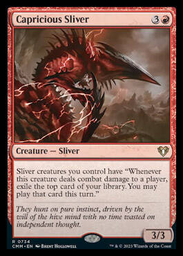 由你操控的裂片妖具有“每当此生物对任一牌手造成战斗伤害时,放逐你的牌库顶牌。本回合中,你可以使用该牌。”