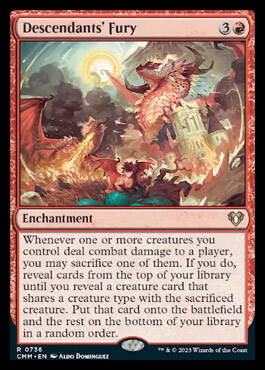 每当一个或多个由你操控的生物对任一牌手造成战斗伤害时,你可以牺牲其中一个。若你如此做,从你的牌库顶展示牌,直到展示出一张与所牺牲的生物具共同类别的生物位置。将该生物放置进场,其余的牌以随机顺序至于你的牌库底。