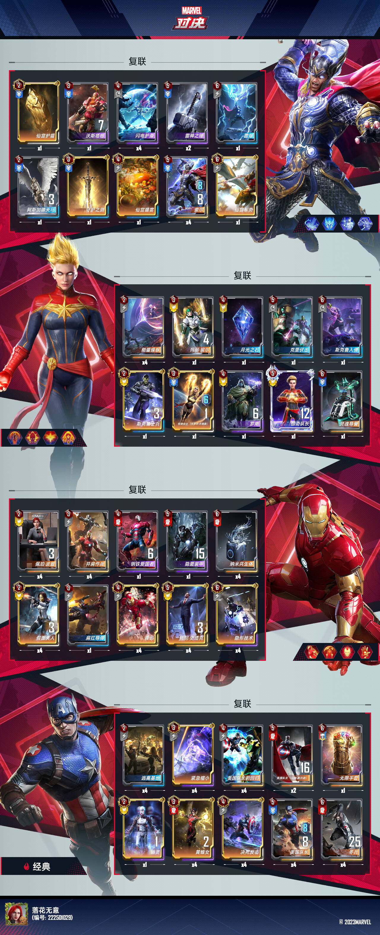 看到营地也有大佬在发复联的卡组,我这边也不断尝试,并抛弃了速本的打法,形成了一套卡三跳五的围绕逃离基地的复联卡组。话不多说上链接和图片。