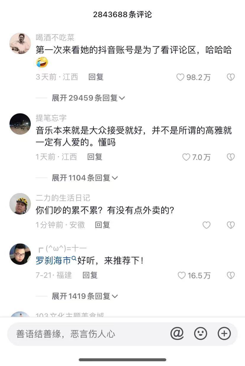 《罗刹海市》的出圈引引发轩然大波,那英最新一条抖音视频的评论区下方,已有180万跟评,大多是批评的声音。