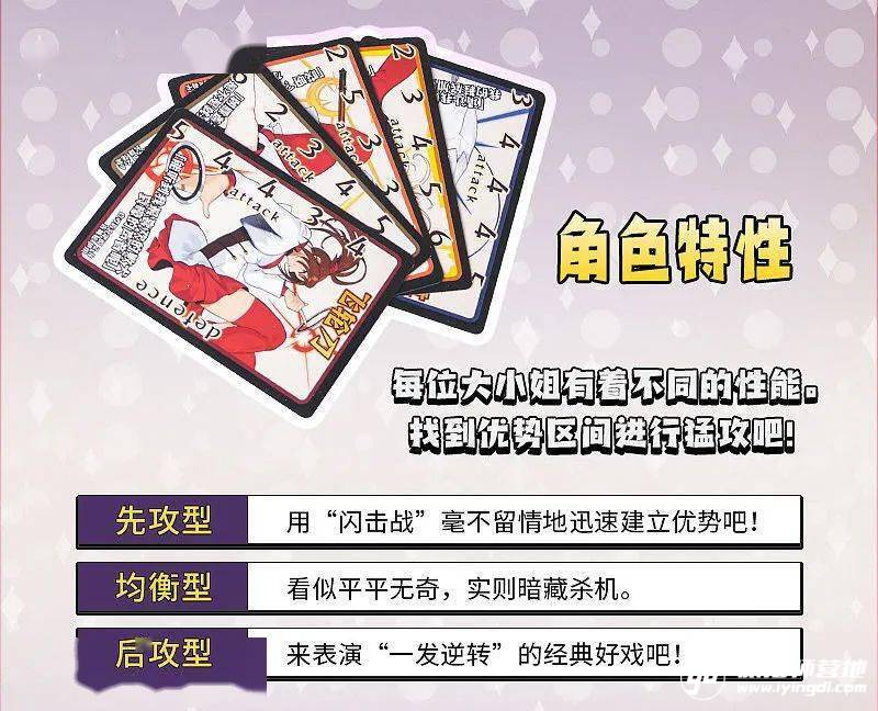 12张大小姐角色牌规定了玩家在每个回合不同的战斗数值,还会根据攻、防关系的切换来实现不同的效果,而这也将直接影响本回合的得分。