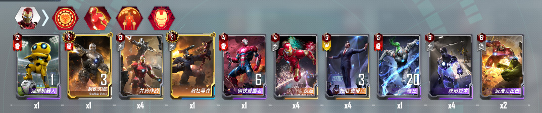 6费:反浩克最多上2张,隐形技术主要保护三个2、3费。