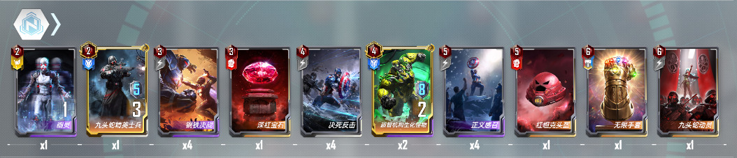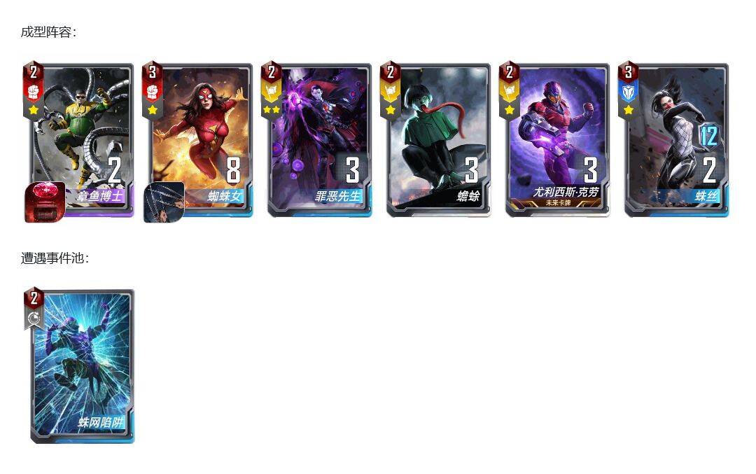 妇联:把贴了蟾蜍飞跃的蛛丝放1号位,防止精准贯穿的猎鹰队长,章鱼博士大概率能打死被晕的幻视。正常来说这套卡组比妇联更早成型的。