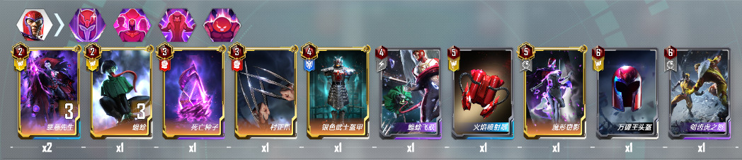 6费:万磁王头盔给2099站蛛丝旁,内战防晕。剑齿虎之怒防先制精准。