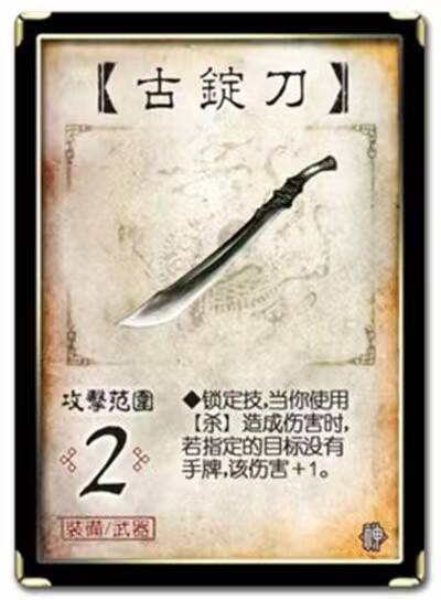 之后是二者套牌中的关键单卡喷火炮与古锭刀。“古锭刀”是一张神器,“鬼怪喷火炮”也是一张神器牌。古锭刀可以增加界徐盛的伤害,鬼怪喷火炮也可以增加伤害(指翻到山脉)。界徐盛依靠古锭刀打出秒**害,无地炮套牌同样需要鬼怪喷火炮造成大量伤害致胜。古锭刀是界徐盛不可或缺的部分,鬼怪喷火炮也是无地炮套牌不可或缺的一部分。