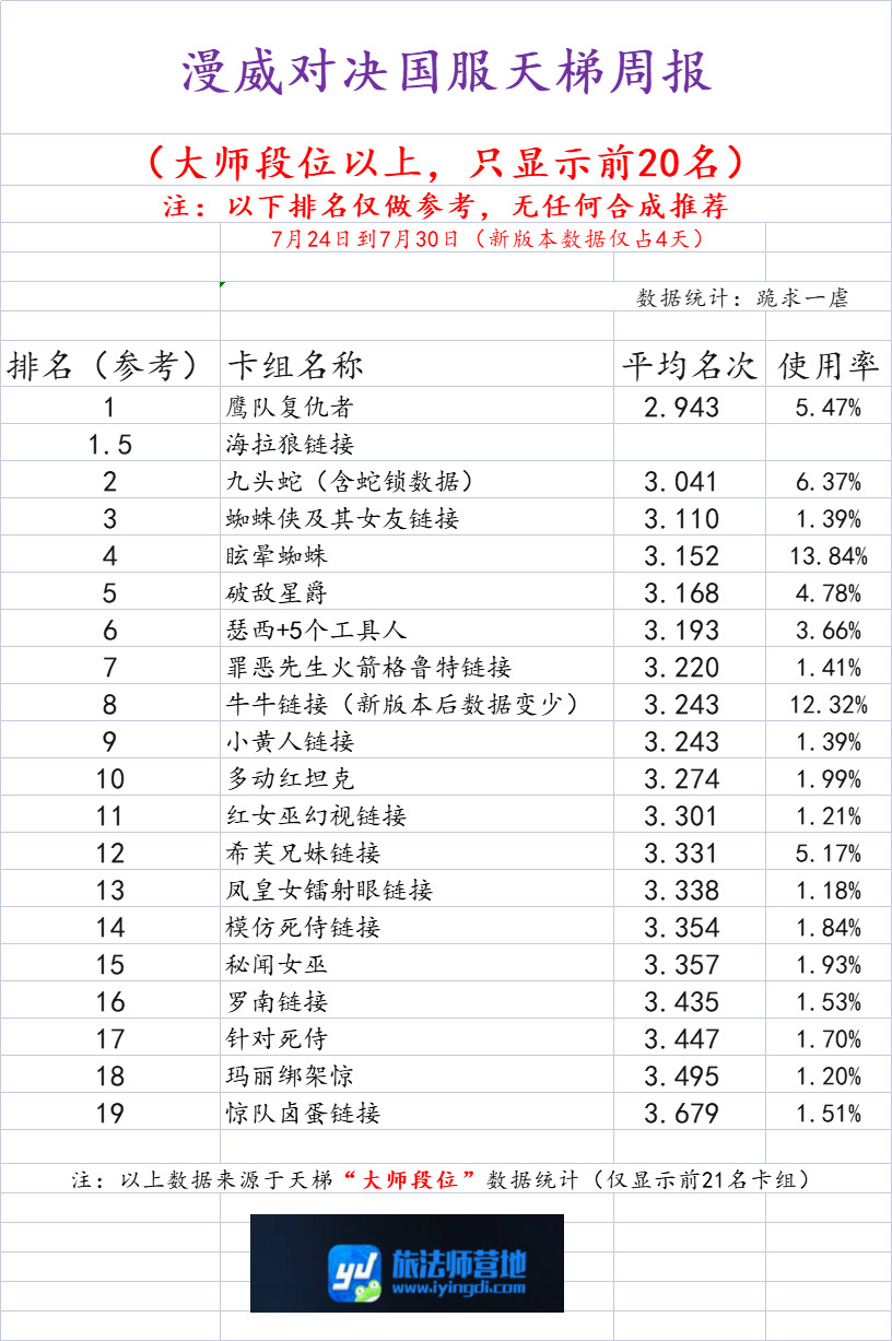 本周报数据仅做参考,不代表卡组在“动态天梯”的适应性,不做任何卡组推荐、合成: