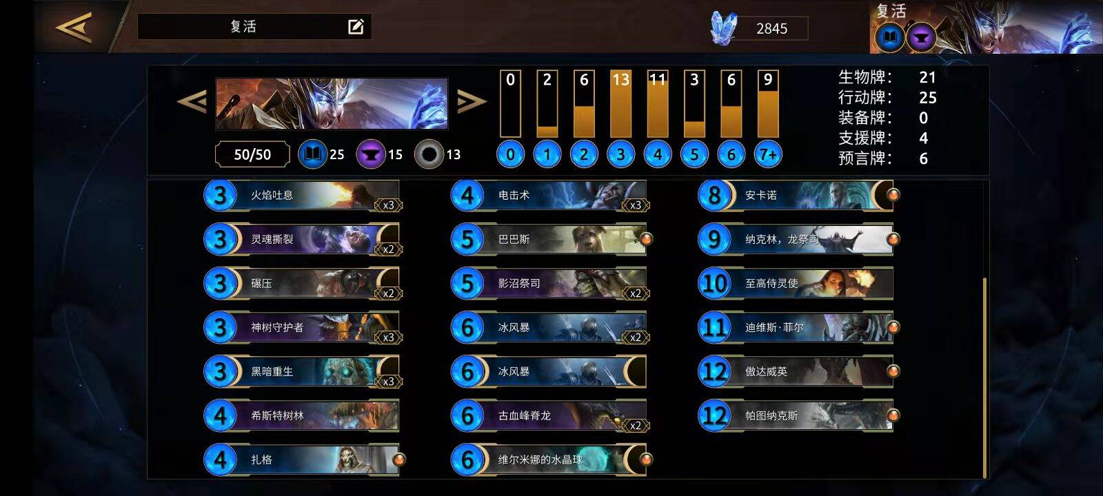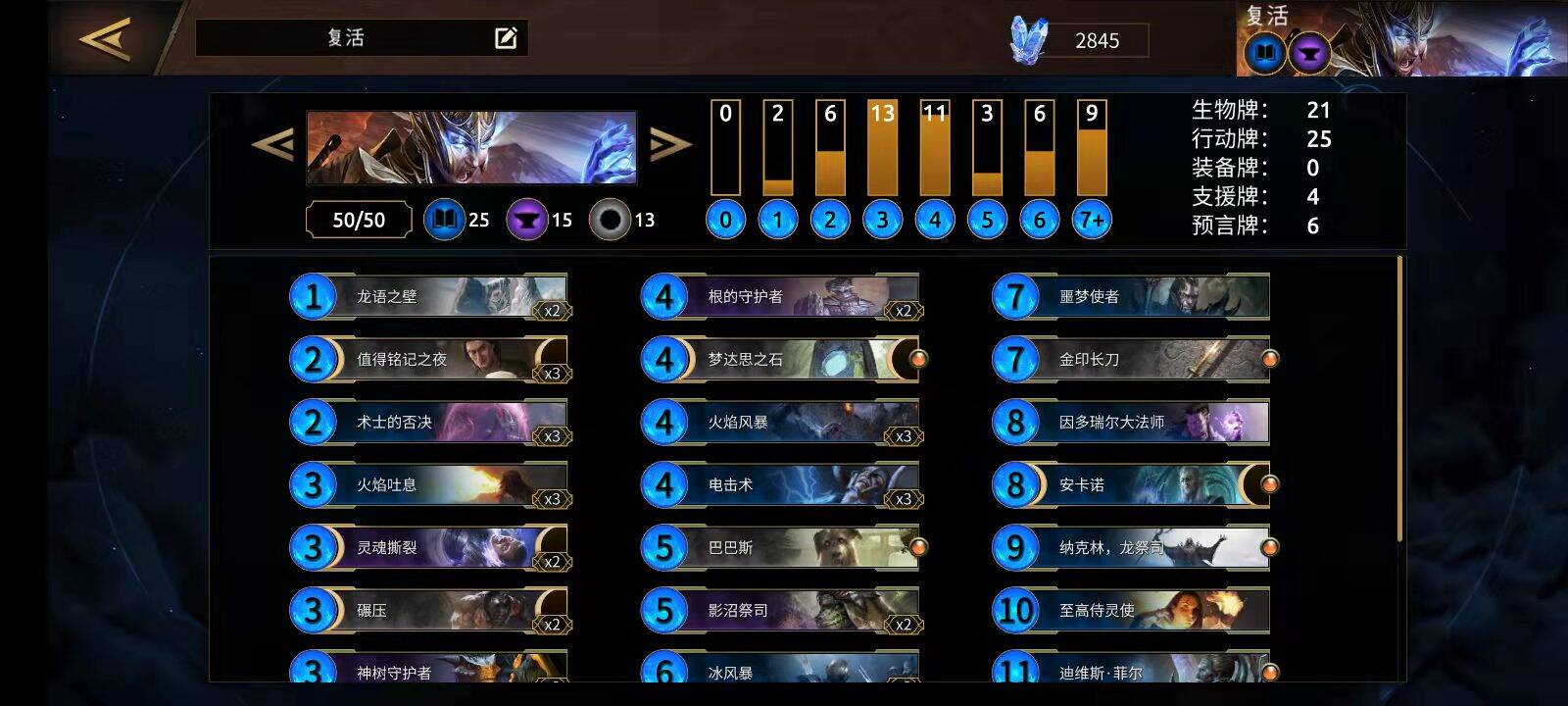 还有预言这个设计,在我一个慢速玩家的眼里,每个符文都是我重要的返场点,也是我前期唯一能返场或者稍微拿回点主动权的机会,但是现在的预言牌明显更适配于快攻,甚至很多慢速的预言单卡对于快攻来说也是不错的玩具(比如投枪),加上50张以后预言变得难触发了一些,对于快攻而言是能接受只过一张牌的,因为他们面对后期卡组的时候,可能这一整局就会掉那么一两个符文罢了。但是对于后期卡组而言,5个符文加一起凑不出一个预言是非常难受的事情,甚至最后一个符文大概率是不会被触发直接打死的....尤其是越后面的符文,触发了的用处越小,如果第一个符文就能触发个不是辣鸡的预言,对于我这个后期卡组玩家可以减少很多的压力了,但是如果最后一个符文才触发的话,大概率还是要被抬走的。