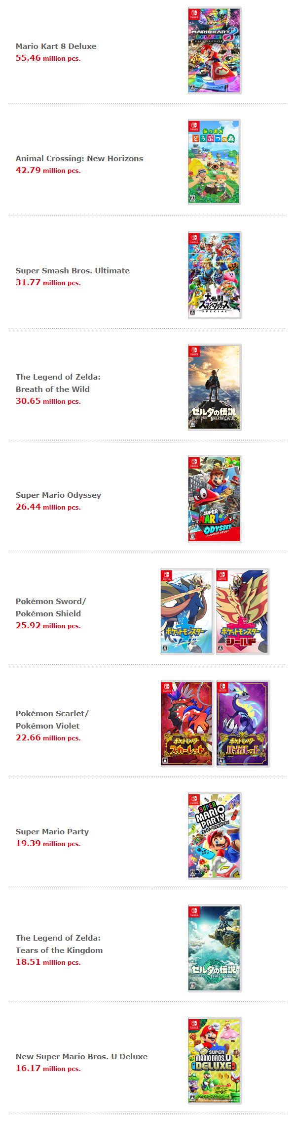 另外,任天堂还分享了Switch第一方游戏的销售数据,其中截至到2023年6月30日,《塞尔达传说:王国之泪》销量已达到1851万份。