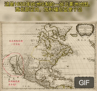加利福尼亚之所以成了一座岛,则是因为在当时,它经常和亚特兰蒂斯、伊甸园岛屿这种神话地点挂钩。所以尽管当时欧洲人知道它不是岛,但这种浪漫的文青思想,不妨碍他们印刷这种地图。