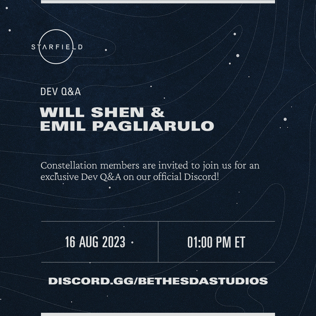 今日(8月10日),《星空》发推宣布将于北京时间8月16日下午14点在Discord频道进行一场开发者问答,将会回答玩家们关心的一些问题,其中《星空》设计总监Emil Pagliarulo 和首席任务设计师Will Shen将出席本次会议。