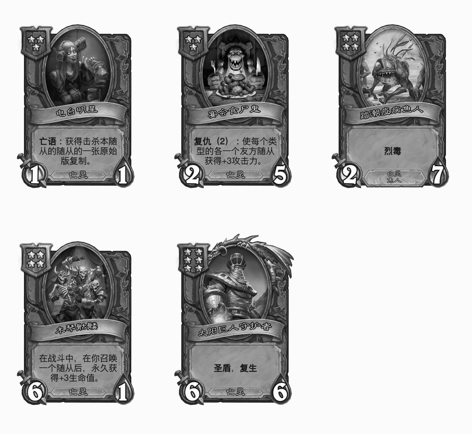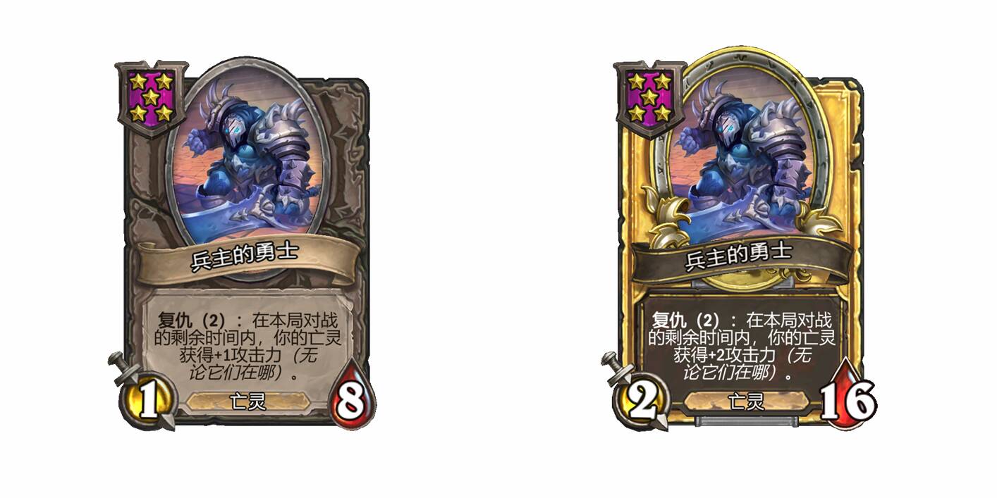 - 5星1/8亡灵,复仇(2):在本局对战的剩余时间内,你的亡灵获得+1攻击力(无论它们在哪)