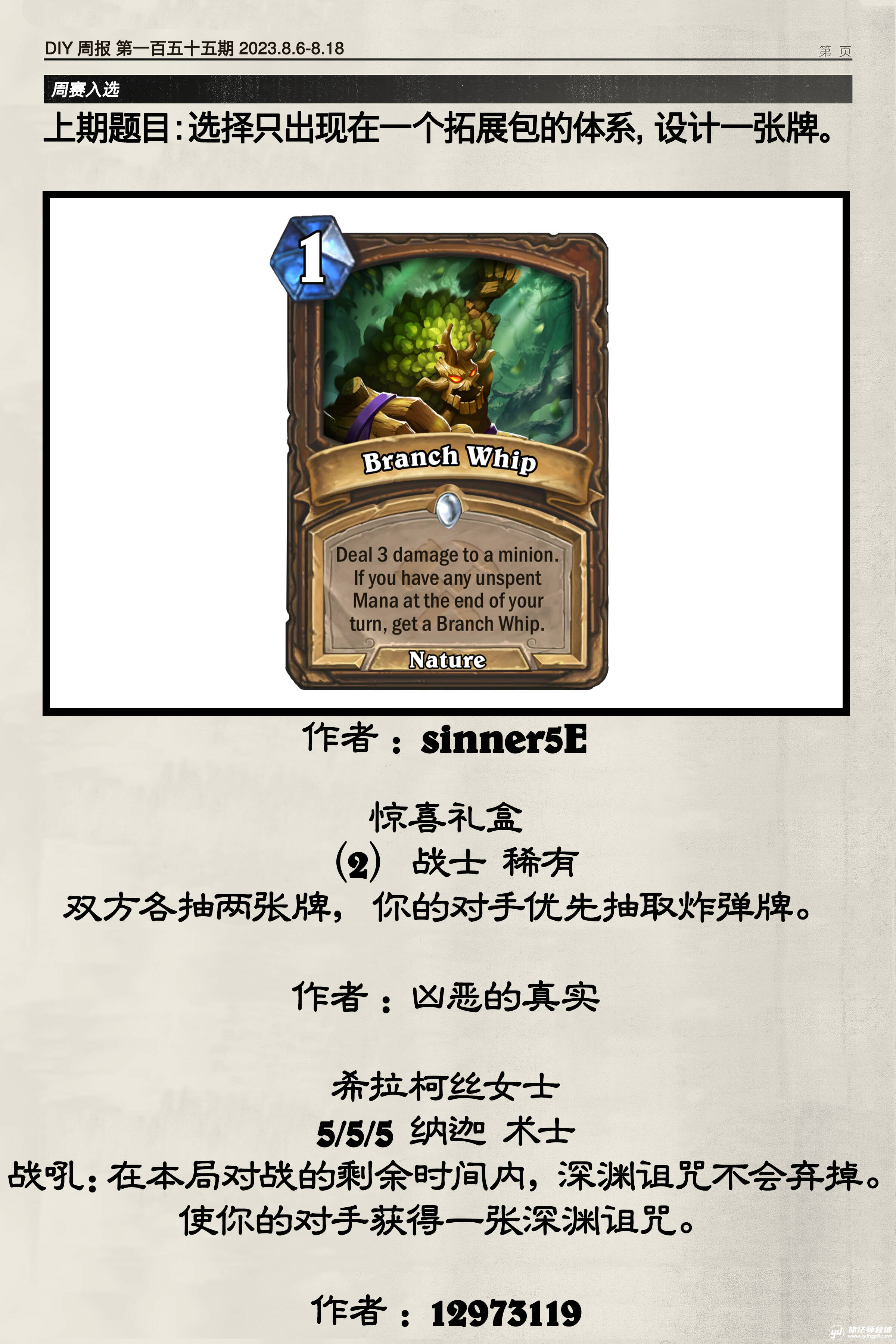 通常来说营地的比赛制图算是基本要求,哪怕没有原画,卡图本身也包含了卡牌的基本信息。本投稿的2缺失职业、消耗、稀有度;4缺失稀有度。投稿不完整。