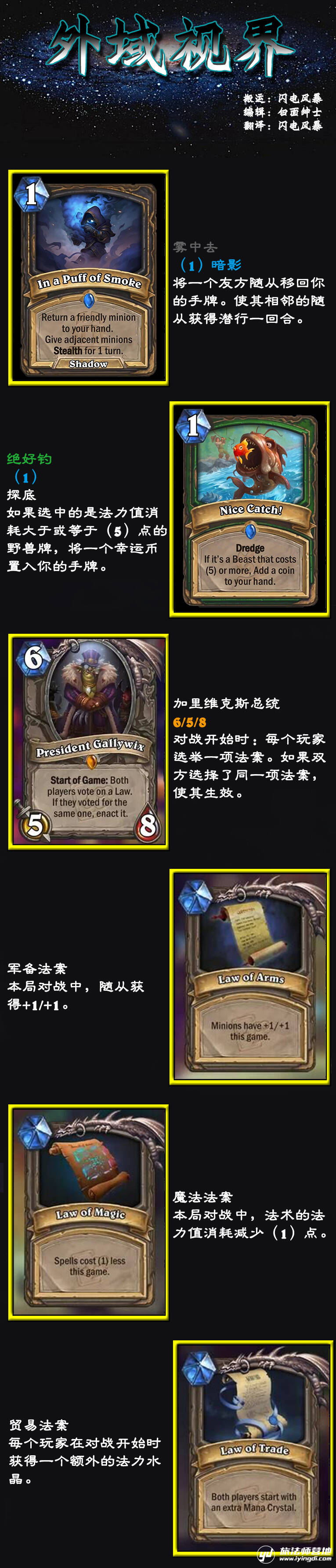 说来我近半年在Reddit上看到的各种地标DIY,发现他们的乐趣大都源于对其他类型的转写——既随从或法术自己带有某种亮点,而把这些随从或法术的特性改造成一座地标,同样的特性因为有了新类型的承载,会有一种专属于新类型的乐趣。比如巨型地标、完爆黑暗裁决的大厅等。