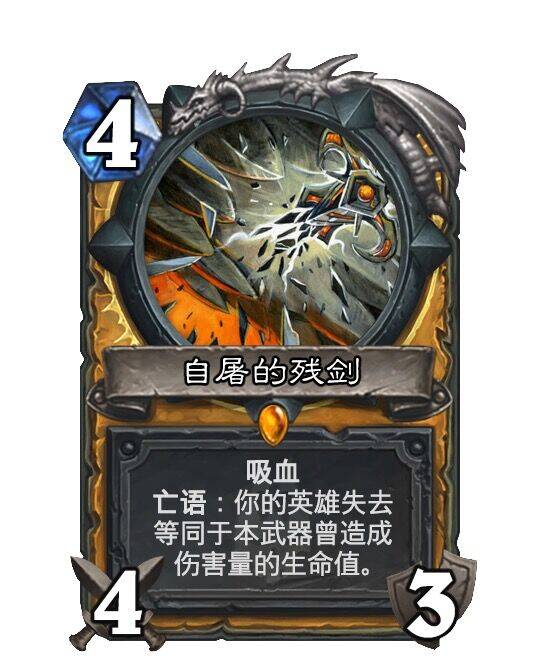 风味描述过多且毫无必要,反而模糊混淆了卡牌效果。“自屠的残剑”效果不值传说。除此之外整体上强度合适。