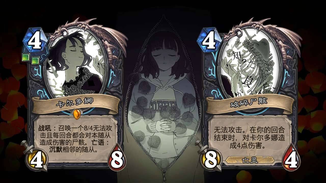 卡牌之间的内在联系实在有些稀缺,若不是最后一张牌原画的强暗示可能都无法理解想讲述的故事,这么看是否存在一些原创性的争议呢()以及卡牌强度控制不尽合理,风格也区别略大,总体来看有些割裂。