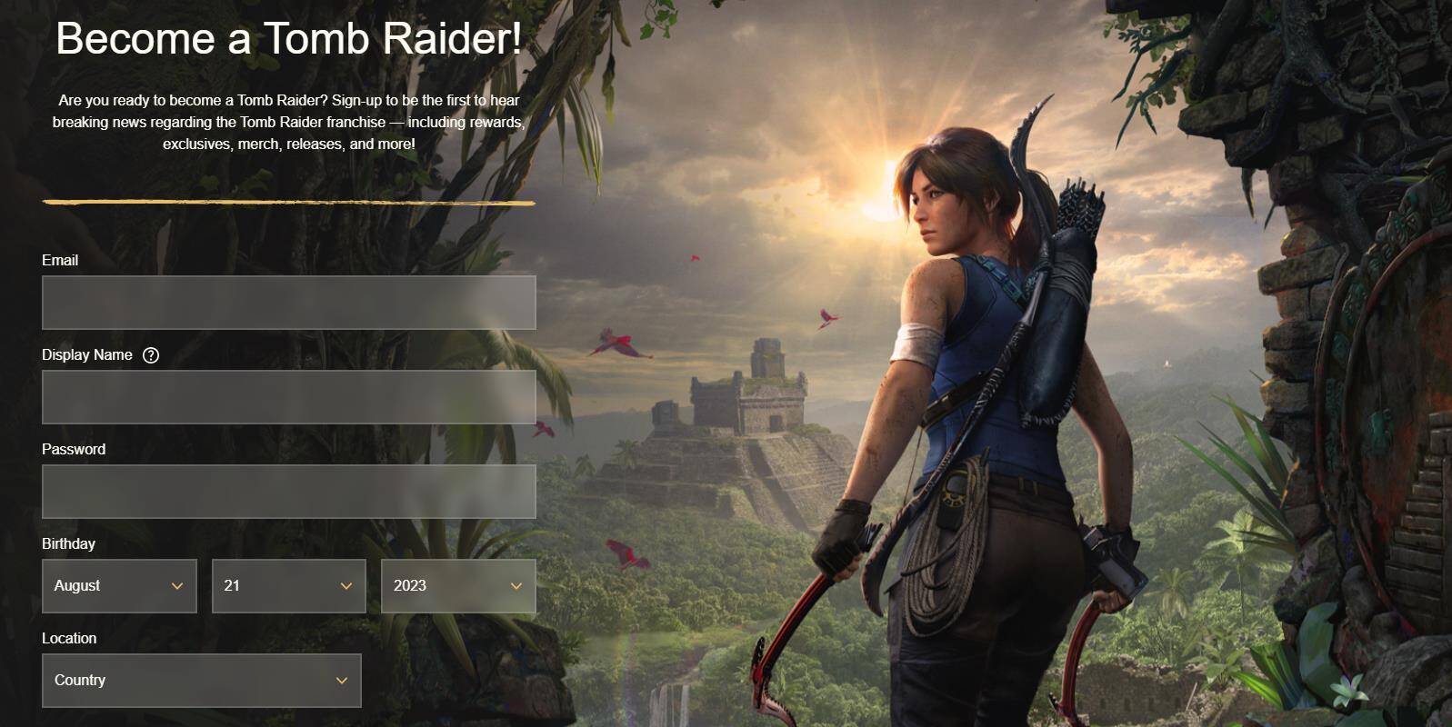 目前,《古墓丽影》官网已进行更新,网站标题为“Become a Tomb Raider”,并要求玩家注册以成为第一个听到有关《古墓丽影》系列重大新闻的人,包括奖励、独家报道、商品、发布等等。