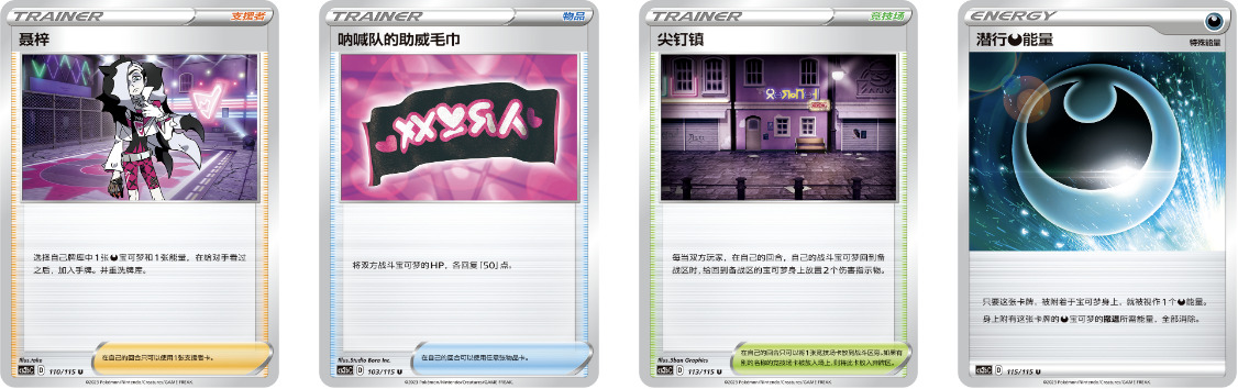 *补充包【浓墨重彩 靛】收录了包含水、雷、超、恶属性宝可梦以及配套使用的训练家卡牌。