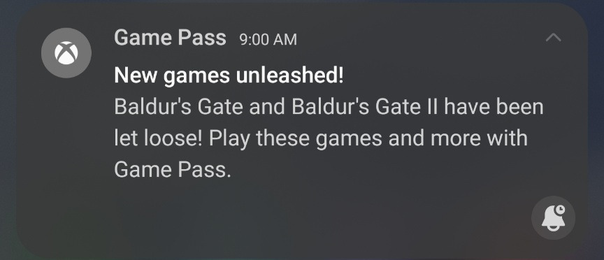 推特用户IdleSloth84近日发文称,有一些玩家收到了系统推送的消息,称《博德之门》和《博德之门2》即将登陆XGP。不过目前,微软官方还没有宣布这个消息。