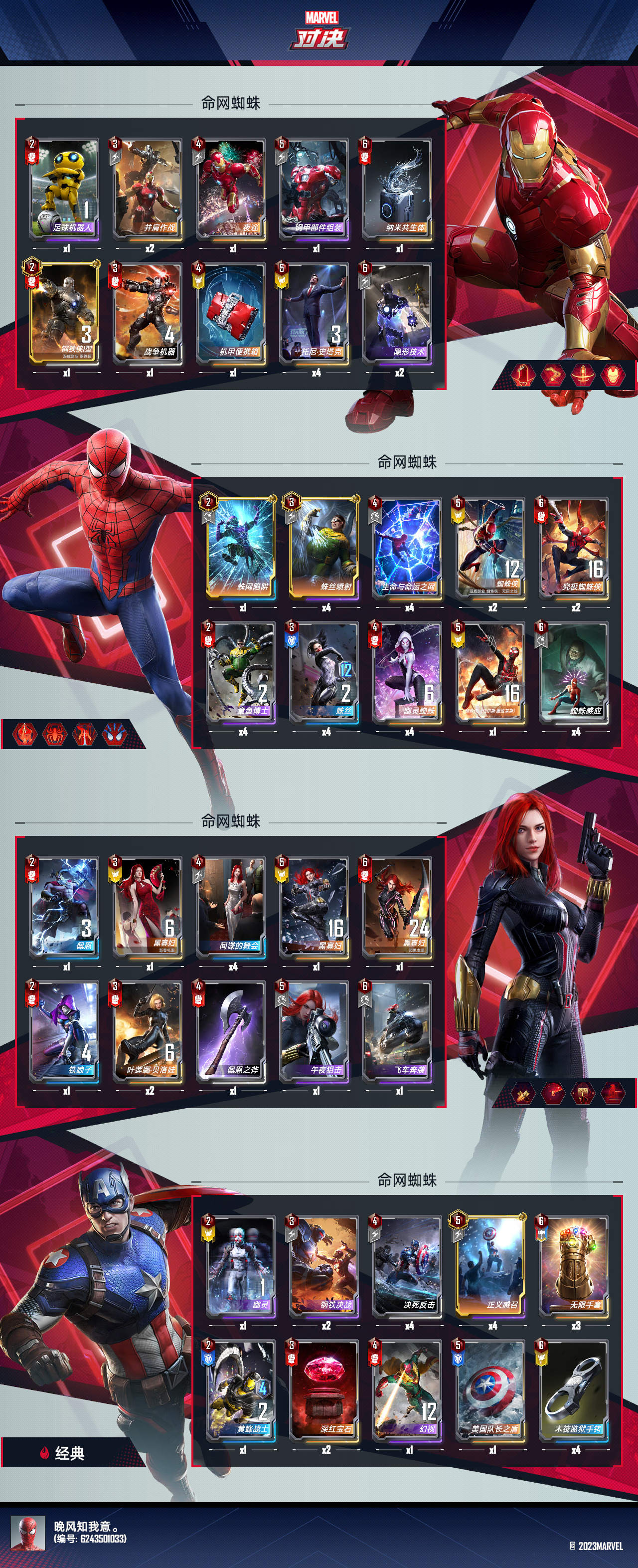 三本:蛛丝喷射满编,中期养战力神卡,决赛先手作用也不用多说(虽然现在很多幻视),另一张蛛丝核心卡之一,如果找到2099后期更是一次晕六个,神。